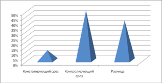 Констатирующий срез – 10%, контролирующий срез – 50%, разница – 40%.