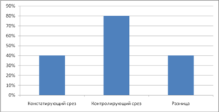 Констатирующий срез – 40%, контролирующий срез – 80%, разница – 40%.