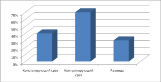 Констатирующий срез – 40%, контролирующий срез –70%, разница – 30%.