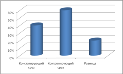 Констатирующий срез – 40%, контролирующий срез – 60%, разница -20%.