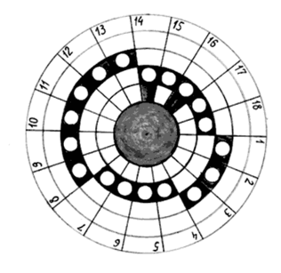 Впишите в ряды (от края круга к центру) недостающие в приведенных фразеологических оборотах слова, и тогда вы прочтете в выделенных клетках (по часовой стрелке) получившийся фразеологический оборот.
