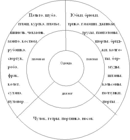 Таким образом, семантическое структура поля "одежда" состоит из следующих частей: