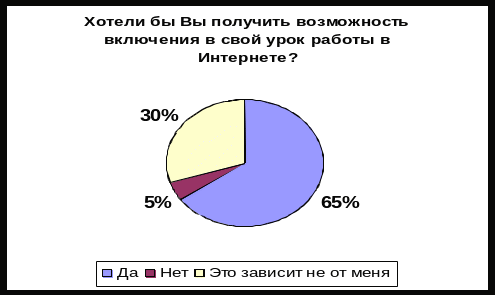 Несмотря на эти недостатки многим учителям хотелось бы получить возможность провести урок, используя Интернет. Но, к сожалению, как отметили учителя - это не всегда зависит от них.
