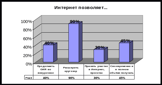 Несомненно, все учителя знают, что такое Интернет и какими возможностями он обладает. Большее количество думают, что Интернет позволяет расширить кругозор как учащихся, так и самих педагогов.