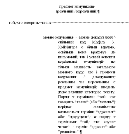 Гадається, що термін "повідомлення" представляється в даному разі'' неправомірним. Доцільніше замінити його на термін "мовленнєвий акт". 3. Хойзінгер пропонує наступну схему [14, 10] (див. схему.1.3).