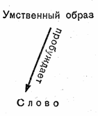 В данном случае язык переводится из потенциальной формы существования в реальную: в сознании пробуждается умственный образ, а вслед за этим (молча или вслух) произносится соответствующее слово. Связь между образом и словом актуализируется в направлении от образа к слову (см. рисунок 2)12.