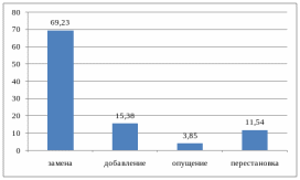 Как видно из данной диаграммы, самым распространенным видом переводческих трансформаций, используемых при переводе научно-технических текстов. Является трансформация путем замены. На втором месте по частоте использования трансформация добавления. На третьем месте трансформация перестановкой. И на четвертом месте трансформация методом опущения, которая встречается крайне редко.