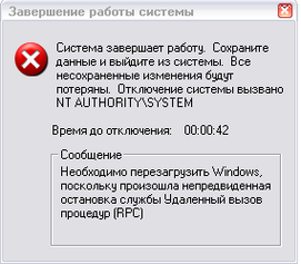 Сообщение об ошибке – результат работы вируса Blaster