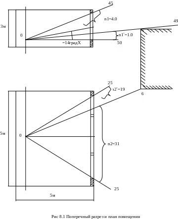 Значения параметров определяемые по таблицам [8], а также по плану и разрезу помещения, результаты промежуточных вычислений сведены в таб. 8.7 подставляя численные значения находим: