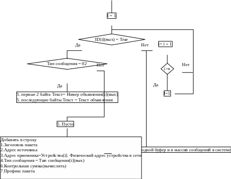 – Количество устройств вывода в ИСУ; 1 - "Заголовок пакета"; 2 - "Адрес источника"; 3 - "Адрес приемника"; 4 - "Тип сообщения"; 5 - "Текст"; 6 - "Контрольная сумма"; 7 - "Префикс пакета".