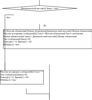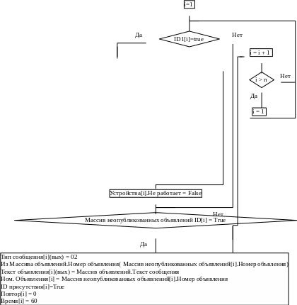 Все объявления принятые системой помещаются во временный массив объявлений. После чего с помощью процедуры Processing (см. рис. 18 - 21) они обрабатываются и помещаются в базу данных объявлений (массив объявлений). Также процедура выполняет одну из важнейших функций, а именно определяет время вывода сообщения и помещает его в массив неопубликованных объявлений. Исключает коллизии, т.е. если два разных сообщения должны быть опубликованы в одно и тоже время, данная процедура определяет приоритеты и принимает решение о первоочередном выводе того или иного объявления.