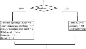 временный массив представляет собой массив записей, состоящий из 16 элементов. В каждой записи находиться два поля 1- "Номер устройства" и 2 – "Номер объявления". Причем 1-вая строка в каждой записи содержит значение количества объявлений, время опубликования которых наступило, но по каким либо причинам они не были опубликованы;