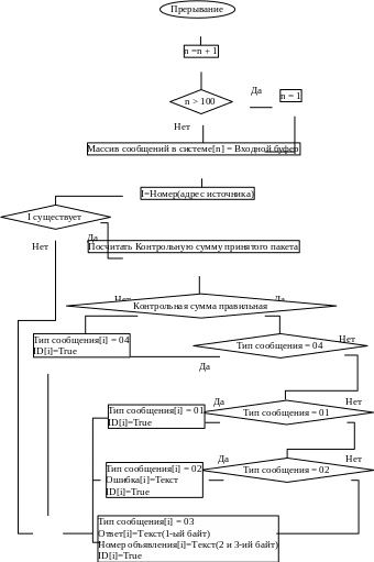 Данная процедура является основным звеном для связи верхнего уровня ИСУ с нижним уровнем. В ее задачу входит обработка всех сообщений принятых от нижнего уровня и формирование и отправка сообщений на нижний уровень.