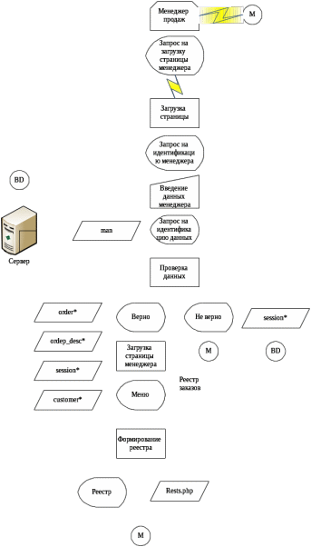 Сценарий диалога менеджера с системой приведен рис. 2.9. Как здесь видно также есть деление режимов работы с системой. Есть формы для работы клиента и формы для менеджера.