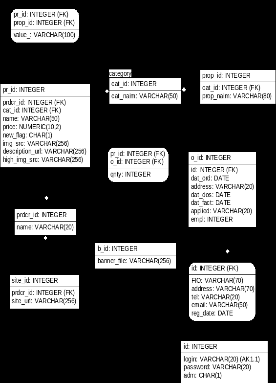 Рис. 2.8. Физическая модель БД, используемая при автоматизации проекта