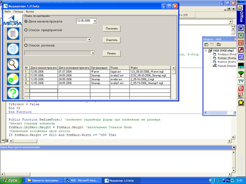 - при нажатии кнопки «Поиск» последовательное считывание всех данных из всех договоров и при нахождении совпадения запись в таблицу имени файла и основных данных того файла, в котором обнаружено совпадение.