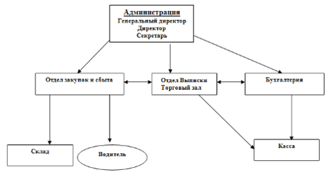 Отдельно выделен бухгалтерский отдел. Этот отдел состоит из главного бухгалтера, двух бухгалтеров и кассира. В обязанности главного бухгалтера входит ведение бухгалтерского учета, формирование отчетов для налоговой инспекции, начисление налогов, решение всех вопросов связанных с налоговой отчетностью и др. Кассир принимает выручку. Два бухгалтера оформляют документы по движению товара.