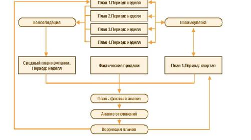 Предусмотрено планирование продаж как по всей компании цел, так и по подразделениям или групп подразделений. Это дает возможность руководителям и менеджерам подразделений составлять планы продаж п своим направлениям. Планы подразделений консолидируются в сводный план продаж по компании. В дальнейшем планы продаж можно сравнить с фактическими продажами, провести анализ отклонений. При необходимости можно провести коррекцию планов в соответствии с выявленными отклонениями.