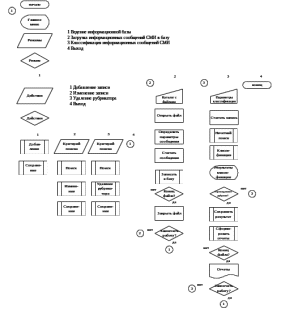 - обработка информационных сообщений СМИ: открытие списка текстовых файлов в каталоге, открытие файла, считывание строки из файла, запись информационных сообщений СМИ в базу, закрытие файла;