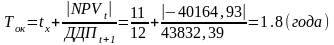 где tx – количество периодов, при которых NPV < 0; NPVt – последнее отрицательное значение NPV; ДДПt+1 – величина ДДП в “t+1”-м периоде.