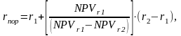 где r1 – исходная ставка дисконтирования; r2 – ставка дисконтирования, при которой NPV < 0; rпор – внутренний коэффициент эффективности проекта; NPVr1, NPVr2 – NPV соответственно при r1 и r2.