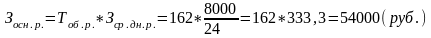 Основная зарплата разработчика определена из расчета 8000 руб. в месяц при среднем количестве рабочих дней, равных 24: