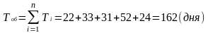 – общая трудоемкость разработки, дни; Тi – трудоемкость по стадиям, дни; n – количество стадий разработки.