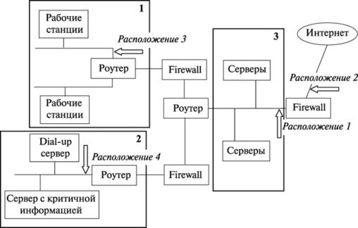 Рис. 3.1. Возможные варианты расположения сенсоров network-based IDS