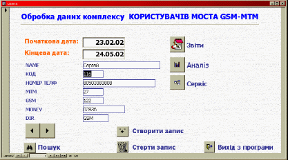 На коп’ютері де всановлений Microsoft Accsess 2000 необхідно запустити програму GSM_MTM.mdb обробки телефонних дзвінків.