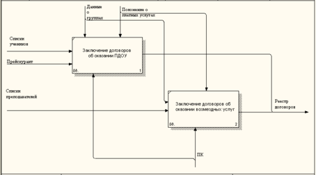 На основании списка учеников заключаются договора об оказании ПДОУ с потребителями и договора об оказании возмездных услуг с исполнителями.