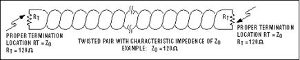 Поскольку затронуты высокие частоты и большие расстояния, должное внимание должно быть уделено эффектам, возникающим в линиях связи. Однако, детальное обсуждение этих эффектов и корректных методов согласования далеко выходит за рамки настоящей статьи. Помня об этом, техника согласования будет кратко рассмотрена в своей простейшей форме, постольку, поскольку она имеет отношение к RS-485.