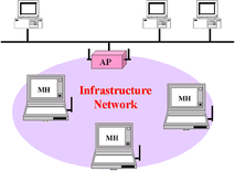 В классическом виде под топологией вычислительной сети пониматься модель связи ее элементов (шина, кольцо, звезда). Но, на сегодняшний день не существует практически, ни одной сети организованной по тому или иному типу связи в чистом виде – все они имеют смешанную топологию. Применительно к беспроводным сетям топология – это скорее архитектура, по которой взаимодействуют элементы сети, различают инфраструктурную архитектуру и одноранговую. В рамках каждой из архитектур предусмотрены следующие режимы работы беспроводных устройств: