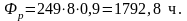 Фр при пятидневной рабочей неделе в году составляет 249 дней по 8 часов и с учетом простоя оборудования в ремонте примет значение:
