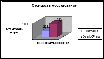 Исходя из данных представленных в таблице 3.4 и диаграмме можно сделать вывод, что компьютер для издательской системы PageMaker будет намного дешевле, чем для QuarkXPress.