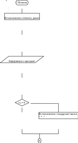 Після задання маски встановлюється вказівник на DTA-буфер, після чого програма реалізує пошук файлів, що відповідають масці і вивід даних на екран. Потім програма повертається до початкового кроку запиту нової маски файлів для наступних дій.