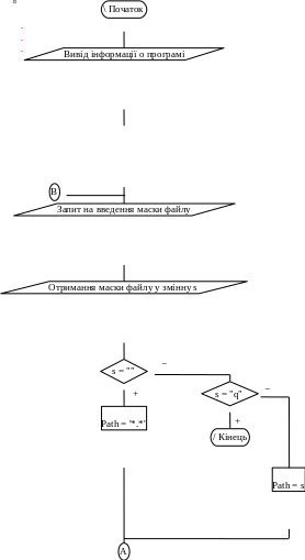 Програма реалізує запит на введення маски файлу і, згідно із реакцією користувача, встановлює стандартну маску, або введену користувачем. При відповіді q – програма завершується.