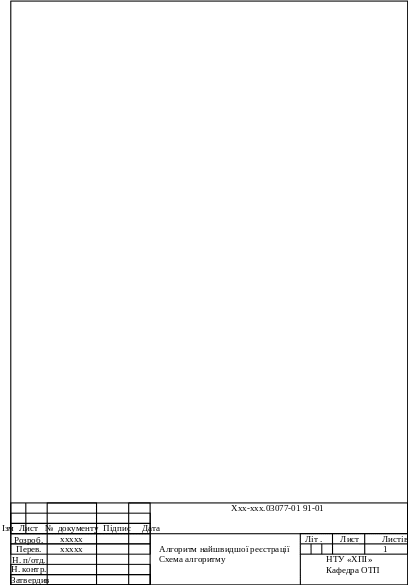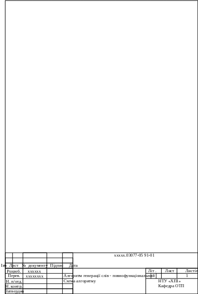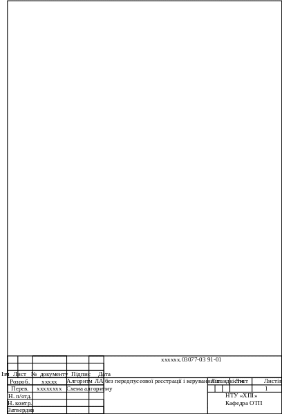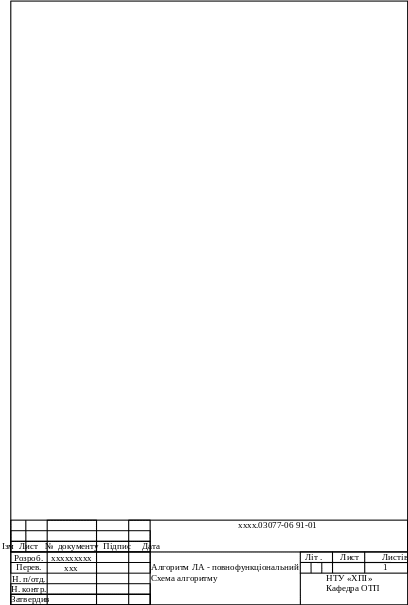 ldi tmp, (1< out WDTCR, tmp ; enable external SRAM ldi tmp, (1< out MCUCR, tmp ; enable interrupts sei ; USART init rcall USART_Init // Unmask timer 0 overflov interrupt ldi tmp, (1< out TIMSK, tmp // Stop timer0 ldi tmp, 0b00000000 out TCCR0, tmp clr RX_Flag clr RX_Complete ldi tmp, 0 out DDRB, tmp ldi tmp, 0b11111111 out PORTB, tmp loop: wdr cpi RX_Complete, 1 breq c_l0 rjmp l0 c_l0: // reset RX_Complete clr RX_Complete // mask RXCIE ldi tmp, (1< out UCSRB, tmp // reset RX_Buffer ldi YL, low(RX_Buffer) ldi YH, high(RX_Buffer) ldi tmp3, 0xFF // do command mov tmp, command andi tmp, 0b11100000 lsr tmp lsr tmp lsr tmp lsr tmp lsr tmp cpi tmp, 0 brne dc_l0 WAIT_PUSK ANALYZE_CLK_6 Rjmp dc_end dc_l0: cpi tmp, 1 brne dc_l1 WAIT_PUSK ANALYZE_CLK_8 Rjmp dc_end dc_l1: cpi tmp, 2 brne dc_l2 WAIT_PUSK ANALYZE_CLK_16 Rjmp dc_end dc_l2: cpi tmp, 3 brne dc_l3 WAIT_PUSK ANALYZE_CLK_32 Rjmp dc_end dc_l3: cpi tmp, 4 brne dc_l4 WAIT_PUSK ANALYZE_CLK_64 Rjmp dc_end dc_l4: cpi tmp, 5 brne dc_l5 WAIT_PUSK ANALYZE_CLK_128 Rjmp dc_end dc_l5: cpi tmp, 6 brne dc_l6 WAIT_PUSK ANALYZE_CLK_256 Rjmp dc_end dc_l6: cpi tmp, 7 breq cdc_unk rjmp dc_unk cdc_unk: WAIT_PUSK ANALYZE_CLK_VN dc_end: /* // wait if need befor pusk WAIT_PUSK // analyse and store (6 cycles) // clock time (1/7372800Mhz)*6 = 813,8ns ANALYZE_CLK_6 */ // reset RX_Buffer ldi YL, low(RX_Buffer) ldi YH, high(RX_Buffer) // transmitt data l1: ld tmp, Y+ USART_TRANSMITT_M Dec tmp3 brne l1 dec tmp3 l2: ld tmp, Y+ USART_TRANSMITT_M Dec tmp3 brne l2 ld tmp, Y+ USART_TRANSMITT_M dc_unk: // unmask RXCIE ldi tmp, (1< out UCSRB, tmp l0: rjmp loop //////////////////////////////////////////////////// // USART receive complete ISR USART_RXC: Push tmp in tmp, SREG push tmp // tmp <- RX in tmp, UDR // if (RX_Flag == 1) goto urxc_l0 cpi RX_Flag, 1 breq urxc_l0 // if (RX == AA) cpi tmp, 0xAA brne urxc_end // init timeout ldi tmp, 0b00000101 out TCCR0, tmp clr tmp out TCNT0, tmp // set recive_flag ldi RX_Flag, 1 // reset RX_Buffer ldi YL, low(RX_Buffer) ldi YH, high(RX_Buffer) clr RX_Counter ldi tmp, 0xAA urxc_l0: // push RX to buffer st Y+, tmp inc RX_Counter urxc_end: pop tmp out SREG, tmp pop tmp reti //////////////////////////////////////////////////// // Timer0 overflow ISR TIMER0_OVF: Push tmp Push tmp1 In tmp, SREG push tmp // Stop timer0 ldi tmp, 0b00000000 out TCCR0, tmp // reset RX_Buffer ldi YL, low(RX_Buffer) ldi YH, high(RX_Buffer) cpi RX_Counter, 3 brne t0ovf_l0 ld tmp, Y+ cpi tmp, 0xAA brne t0ovf_l0 ld tmp, Y+ cpi tmp, 0x3A brne t0ovf_l0 ld tmp, Y+ mov command, tmp ldi RX_Complete, 1 //clear buffer ldi YL, low(RX_Buffer) ldi YH, high(RX_Buffer) clr tmp st Y+, tmp st Y+, tmp st Y+, tmp st Y+, tmp st Y+, tmp t0ovf_l0: // clear recive_flag clr RX_Flag pop tmp out SREG, tmp pop tmp1 pop tmp reti //////////////////////////////////////////////////// // USART init routine // uses: tmp, tmp1 USART_Init: Ldi tmp, (1< Out UCSRB, tmp Ldi tmp, (1< Out UCSRC, tmp Ldi tmp, 0 Ldi tmp1, 23 Out UBRRH, tmp Out UBRRL, tmp1 Ldi tmp, 0b00000001 Sts UC_REG, tmp ret //////////////////////////////////////////////////// // USART transmit routine // uses: tmp USART_Transmit: cli ut_l0: wdr sbis UCSRA, UDRE rjmp ut_l0 out UDR, tmp sei ret МІНІСТЕРСТВО ОСВІТИ І НАУКИ УКРАЇНИ НАЦІОНАЛЬНИЙ ТЕХНІЧНИЙ УНІВЕРСИТЕТ “ХАРКІВСЬКИЙ ПОЛІТЕХНІЧНИЙ ІНСТИТУТ” Кафедра: “Обчислювальна техніка та програмування” Завідуючий кафедрою ОТП __________ /xxxx./ "___" __________ 2009р. ВІРТУАЛЬНИЙ ВИМІРЮВАЛЬНИЙ КОМПЛЕКС НА БАЗІ УЧБОВОГО ЛАБОРАТОРНОГО СТЕНДУ EV8031 Опис програми ЛИСТ ЗАТВЕРДЖЕННЯ xxxxx.03077-01 13 01-1-ЛЗ РОЗРОБНИКИ Керівник проекту /xxxxxxxxx./ “_____”____________2009р. Виконавець студент групи xxxxx /xxxx./ “_____”_______________2009р. Харків 2009 ЗАТВЕРДЖЕНО xxx.03077-01 13 01-1-ЛЗ ВІРТУАЛЬНИЙ ВИМІРЮВАЛЬНИЙ КОМПЛЕКС НА БАЗІ УЧБОВОГО ЛАБОРАТОРНОГО СТЕНДУ EV8031 Опис програми xxxx.03077-01 13 01-1 Листів _8_ Харків 2009 АНОТАЦІЯ Даний документ містить у собі опис програми, методів та алгоритмів, що використовуються, опис потреб та особливостей функціонування продукту, розробленого у межах дипломного проектування “віртуального вимірювального комплексу”. Система призначена для тестування різноманітних цифрових пристроїв. ABSTRACT The given document contains the description of programs, methods and algorithms which were used. It describes the requirements and peculiarities of operation of the product developed within the framework of degree projection of a virtual analyze complex. The program implementation of the methods of analysis of self-descriptiveness and diagnostics. ЗМІСТ 1. ЗАГАЛЬНІ ВІДОМОСТІ 1.1 Позначення і найменування програми 1.2 Програмне забезпечення, необхідне для функціонування програми 1.3 Обрана мова програмування 2. ФУНКЦІОНАЛЬНЕ ПРИЗНАЧЕННЯ 2.1 Призначення програми 2.2 Функціональні обмеження 3. ОПИС ЛОГІЧНОЇ СТРУКТУРИ ПРОГРАМИ 3.1 Алгоритм програми 4. ВИКОРИСТАНІ ТЕХНІЧНІ ЗАСОБИ 5. ВИКЛИК І ЗАВАНТАЖЕННЯ 5.1 Виклик програми 5.2 Точки входу в програму 5.3 Використання 