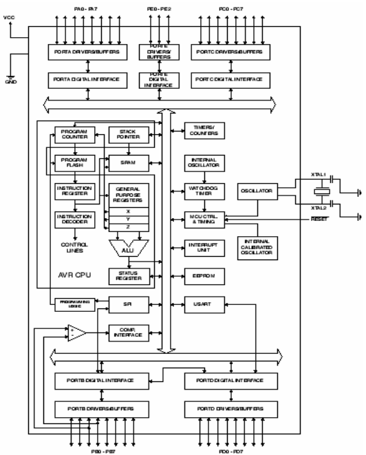 Рис 1. Блок схема мікроконтроллеру ATMega8515