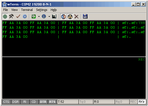 Рис. 20 Загальний вигляд монітору послідовного порту wTerm