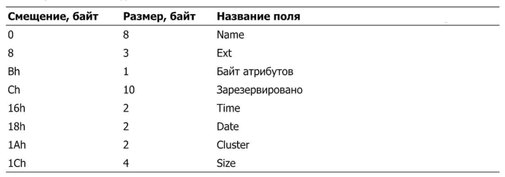 Name — имя элемента данных (файла или папки); если элемент данных отмечен как удаленный, то в качестве первого символа имени используется байт Е5 (в текстовом формате Disk Editor заменяет его буквой х);