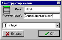 Рис. 3.3. Вид окна конструктора типов: а) конструктор списков;