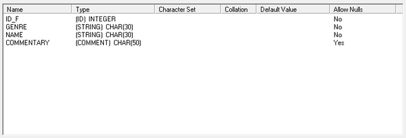 Рисунок 5.2.4 Таблица Films в InterBase