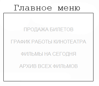 Раздел меню «Архив всех фильмов» предназначен для вывода информации обо всех фильмах, имеющихся в кинотеатре.