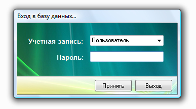 Для начала работы пользователь должен запустить программу любым имеющимся для этого способом операционной системы Windows. После запуска программы на экране появится форма входа в базу данных. Данная форма представлена на рисунке 8.1.