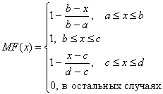 Аналогично для задания трапецеидальной функции (рисунок 2.3) принадлежности необходима четверка чисел (a,b,c,d):