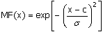 и оперирует двумя параметрами. Параметр c обозначает центр нечеткого множества, а параметр отвечает за крутизну функции.