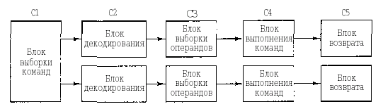 Рисунок 2.4 - Двойной конвейер из пяти стадий с общим отделом вызова команд