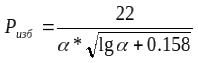 При избыточное давление (кПа) рассчитывается по зависимости:
