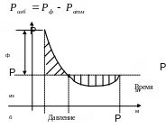 Ударная волна - это область резкого сжатия среды, которая в виде сферического слоя распространяется во все стороны от места взрыва. Образовавшийся слой сжатого воздуха называется фазой сжатия-С, а зона пониженного давления - фазой разряжения Р (рис.2). Избыточное давление во фронте ударной волны Ризб. - это разность между максимальным давлением взрыва Рф и нормальным атмосферным давлением Ратм.