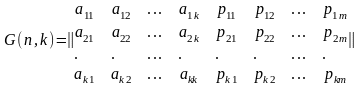 Групповые коды удобно задавать при помощи матриц, размерность которых определяется параметрами k и n. Число строк равно k, а число столбцов равно n = k+m.